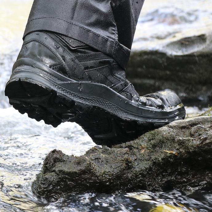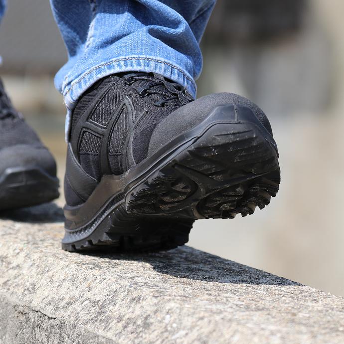 In the Black Eagle Athletic 2.1 T Low, no matter what the situation, you can rest assured you will stay on your feet. The distinctive tread design combined with the special rubber compound that goes into the Black Eagle® sole will maintain its traction on a wide variety of surfaces and in many types of weather, even when it's wet and cold. The high density midsole won't have you feeling every rock and stone either.