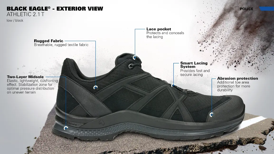 The running shoe technology built into the Black Eagle Athletic 2.1 T Low is lightweight and flexible. Cushioned insoles give you the extra comfort your feet crave. Enjoy an athletic shoe feel with the function of a duty shoe.