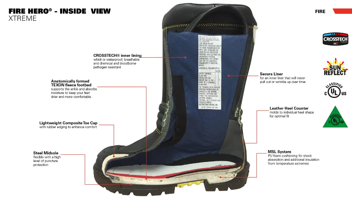 Your safety is priority. Fire Hero Xtreme keeps you protected from the heat and flames, offers the highest level of sole puncture resistance, protects your toes and protects you from dangerous fluids you can be exposed to on the job. Our durable European Bullhide leather not only offers more protection, it offers more stability (no more boot flop over) and long-term durability.